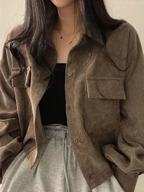 Treten Sie ein in zeitlose Eleganz: die Aida Vintage Corduroy Cropped Jacket!